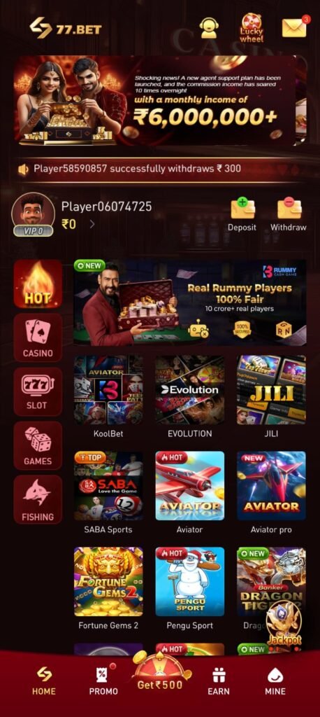 77 Bet Game is an Android-based online gaming application where players can enjoy different types of games such as slots, card games and casino games. The app is designed with a simple interface so that even new users can easily start playing.