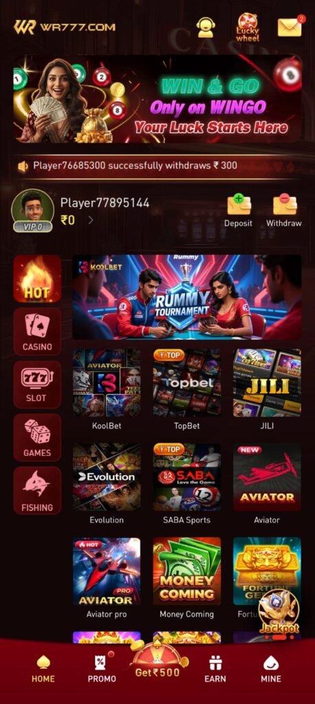 WR777 Game is a trending online real-money gaming app in India. This app offers exciting slot games, card games, and casino-style entertainment. With an attractive welcome bonus and fast withdrawal system, WR777 Game is becoming popular among Android users.